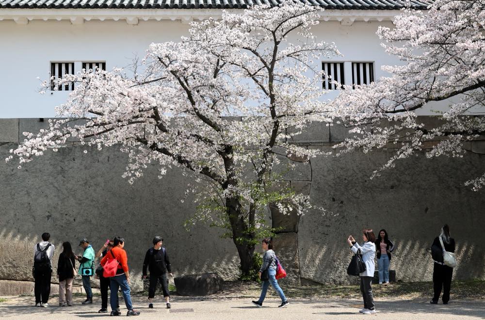 大阪城の白壁にきれいな桜…。普通はそれだけでまとめるだけが多いのですが、作者は人物を邪魔ものとせず、勝手気ままに動いている人や停まっている大勢の人をご自分の感性で時間を止めるという少し難しい写真に…。屋根瓦の影が伸びているのも見逃しません。個人的に私好みの写真です。